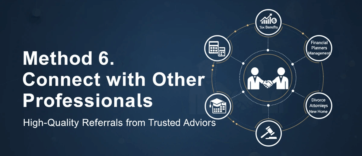 While everyone chases realtors, smart LOs diversify. Partnering with professionals like CPAs and Financial Advisors can yield some of the highest-quality leads you will ever get. Why? Because when a financial advisor refers a client, that client usually has their financial house in order, good credit, documented assets, and a clear budget. These are "slam dunk" files compared to the messy leads you might get from the internet.