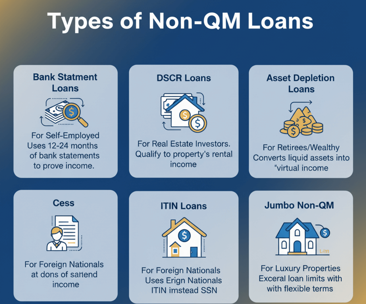 Jumbo Non-QM: For luxury properties that exceed federal loan limits, offering more flexible terms than traditional Jumbo loans.